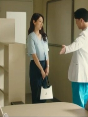 朴信惠在韩剧《低谷医生》中背起这款双色拼接包,将背带调短变成手提样式,展现他的优雅气质。
