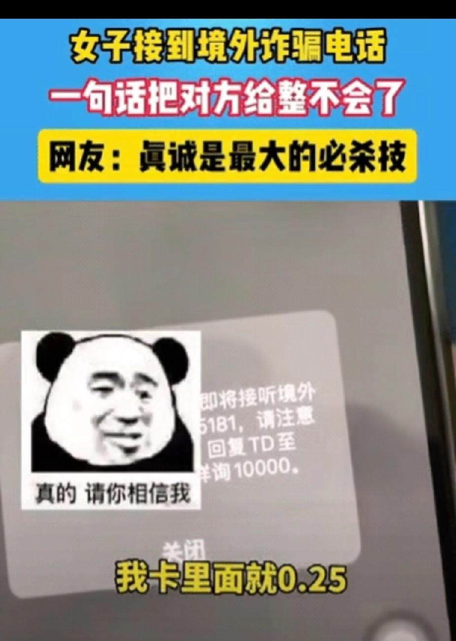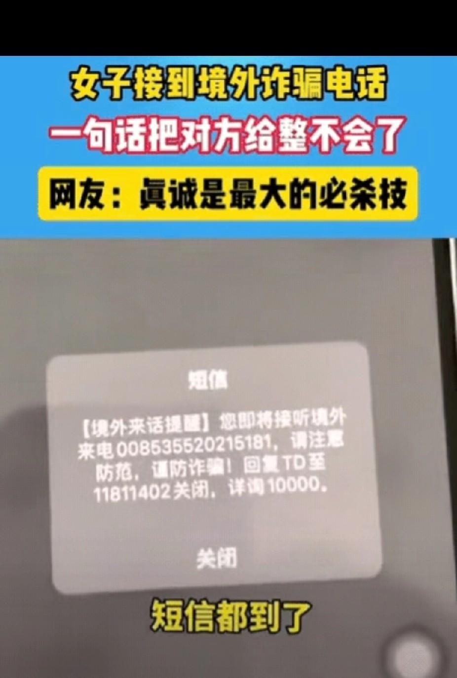 “笑不活了!”女子接到陌生来电,刚准备接听,就收到一条短信,提醒她此号码为境外电话,谨防诈骗!女子准备“将计就计”,接听电话后,对方自称是蚌埠市市公安局的,女子瞬间秒懂!随后一句话,直接把对方给整不会了!网友:真诚是最大的必杀技